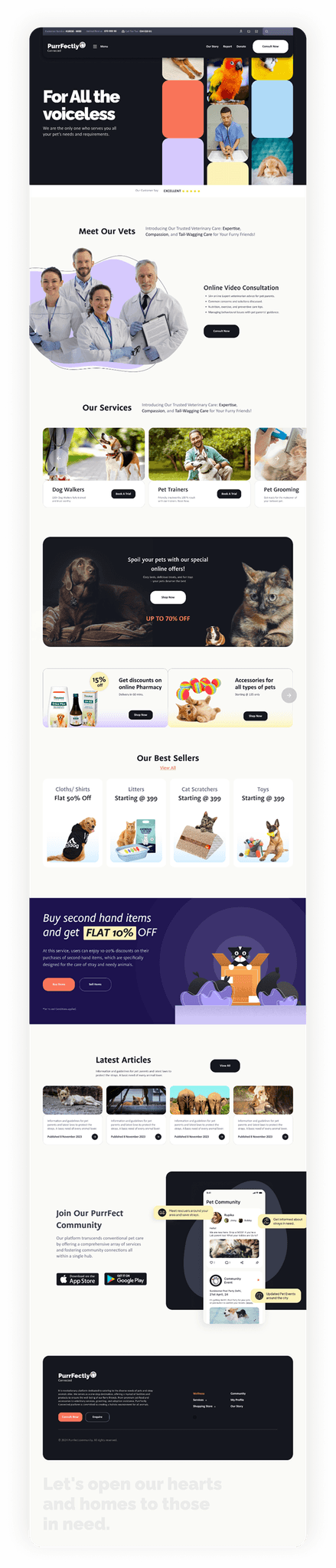 It provides all the services, Accessories, and food, the Latest Information on animals, a community or forum, and online video consultation.